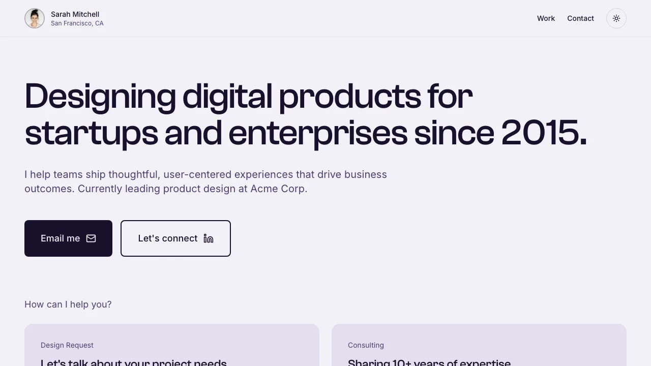 Minimalist Graphic Designer PortfolioShowcase your creative work with a minimalist portfolio that looks custom-designed, not template-based. Perfect for freelancers competing for premium clients without hiring developers.Websites